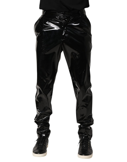 Dolce & Gabbana Black Polyester Mid Waist Men Trouser Pants