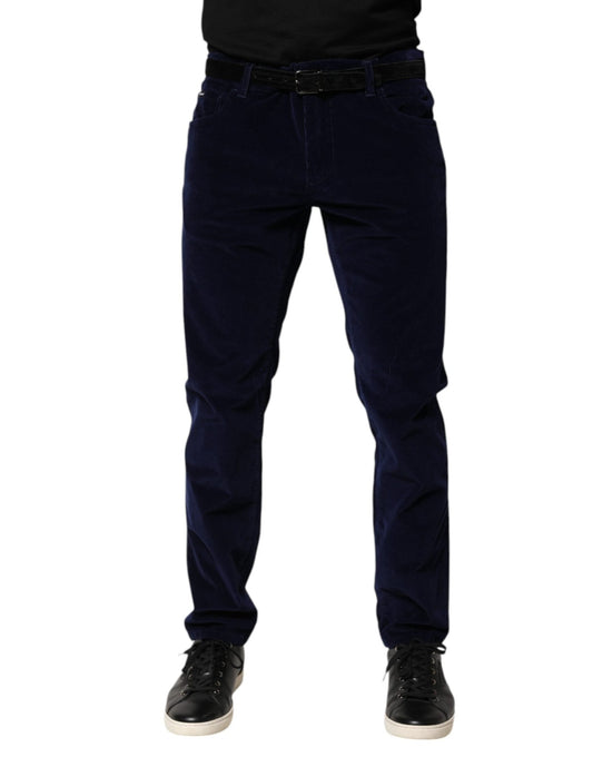 Dolce & Gabbana Navy Blue Cotton Tapered Formal Trouser Pants