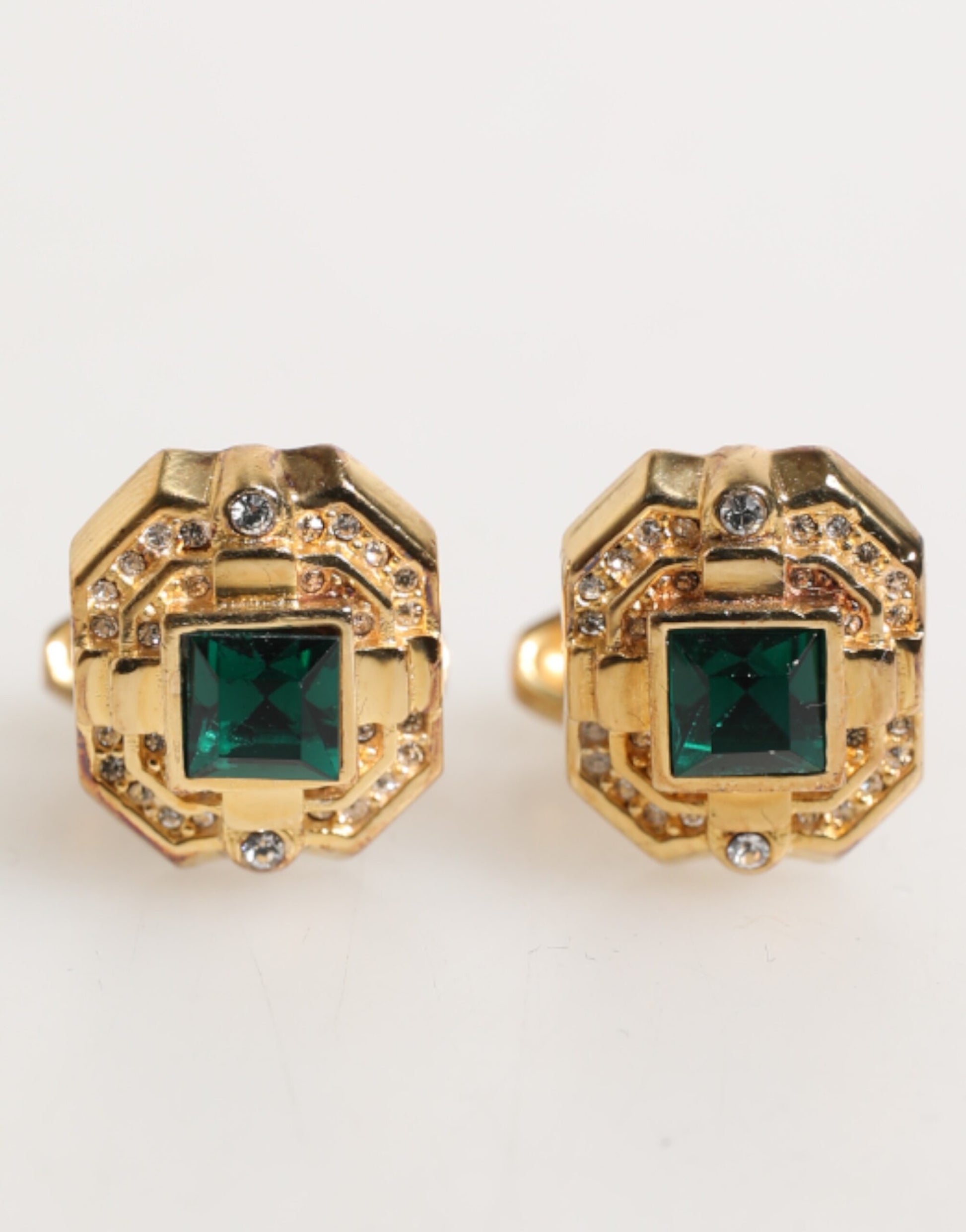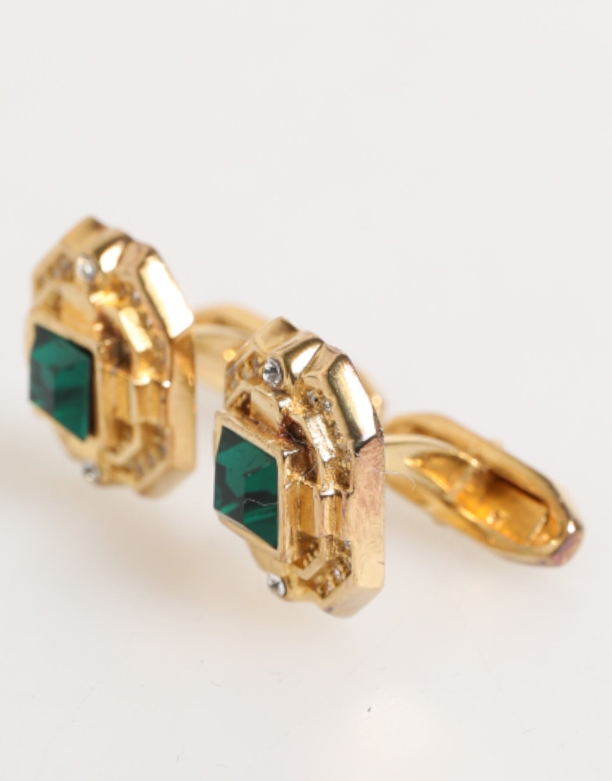 Dolce & Gabbana Emerald Green Crystal Gold Tone 925 Sterling Accessory Cufflink