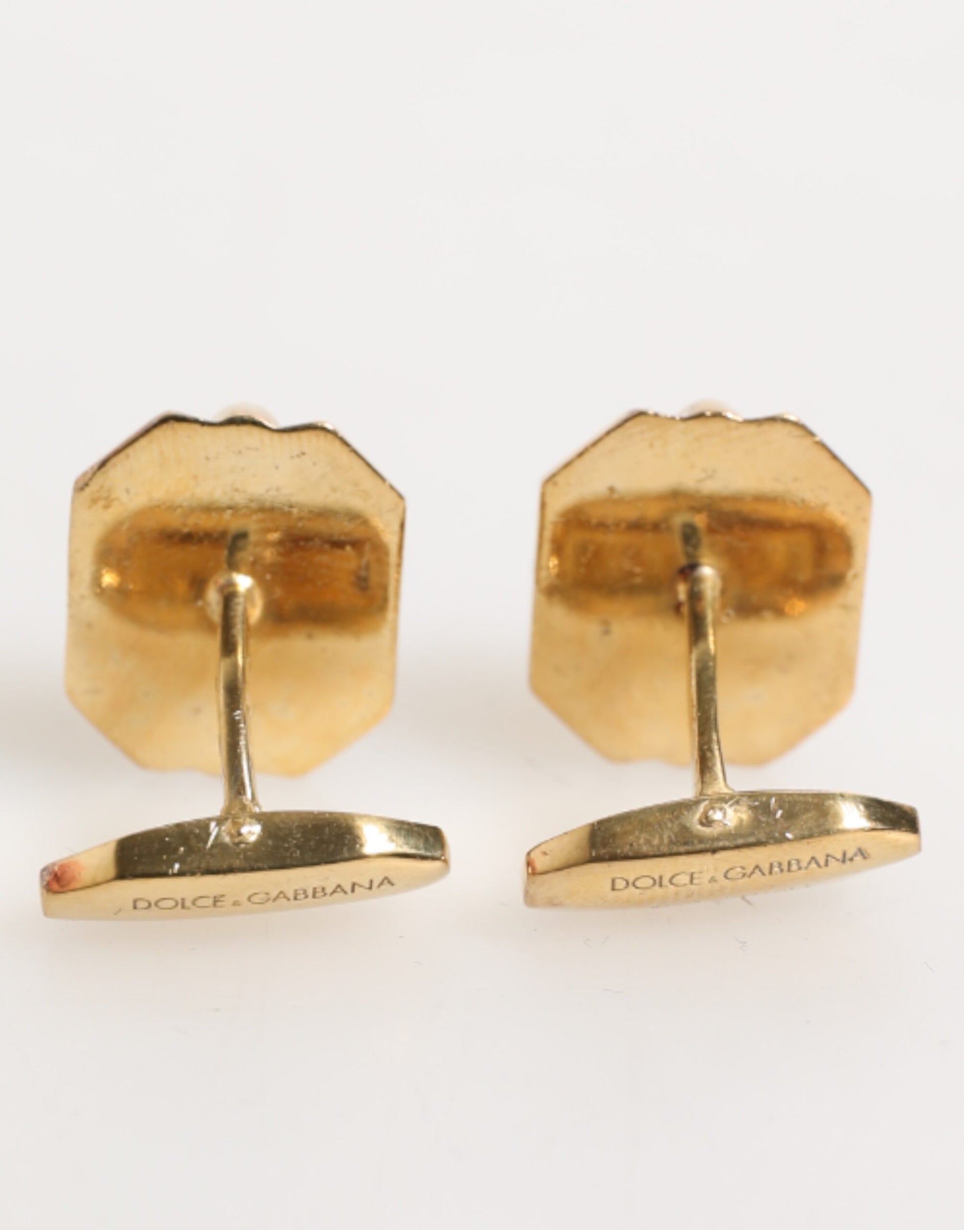 Gorgeous brand new, 100% Authentic Dolce & Gabbana cufflink accessory. Features a striking emerald green crystal centerpiece set in a polished gold-tone finish, expertly crafted from 925 sterling silver. The rich color and refined detailing make this an elegant and luxurious addition to any formal wardrobe.