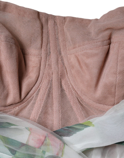 Dolce & Gabbana White Silk Floral Print A-line Midi Dress